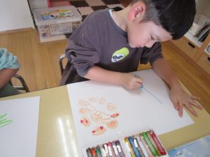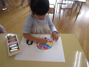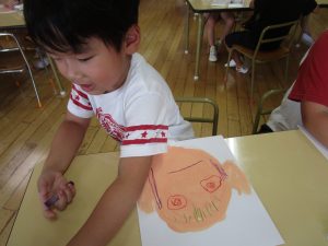 運動会を思い出しながら、「何描こうかなぁ?」と考えていました。