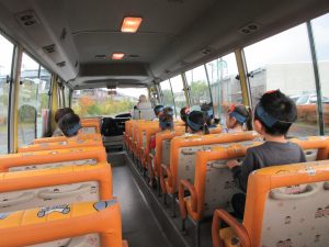 バスに乗り込むとウキウキワクワクウィンク指でOK