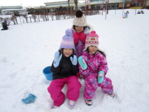 そり遊びや、雪だるまづくりをしていましたよ。