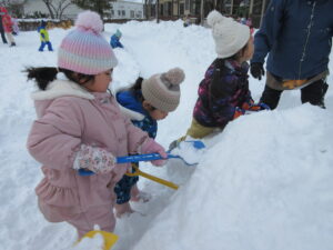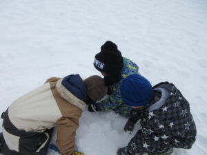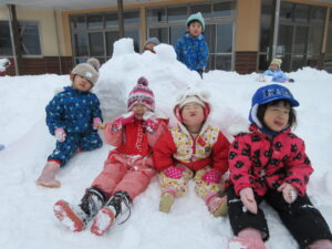 みんなで力を合わせて“かまくらづくり”❄️