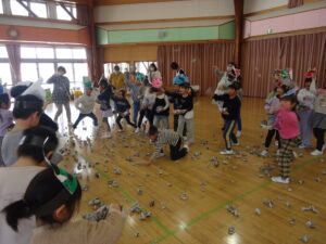 しおどをしたり、給食交流したり