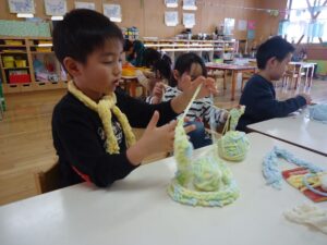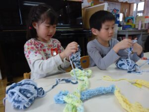 最近は毛糸を使って指あみをする