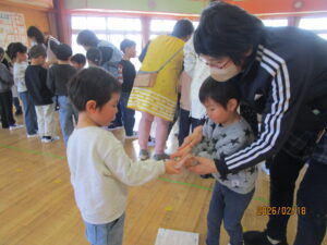 友達と豆まき競争💪