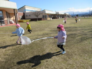 ビニール袋の凧揚げを楽しみました😊✌️